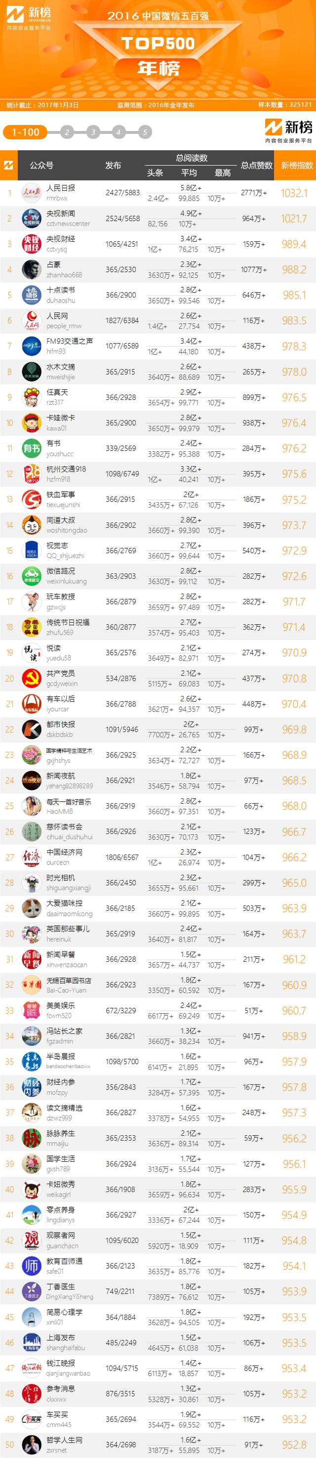 2016年中国微信500强年榜 | 新榜出品